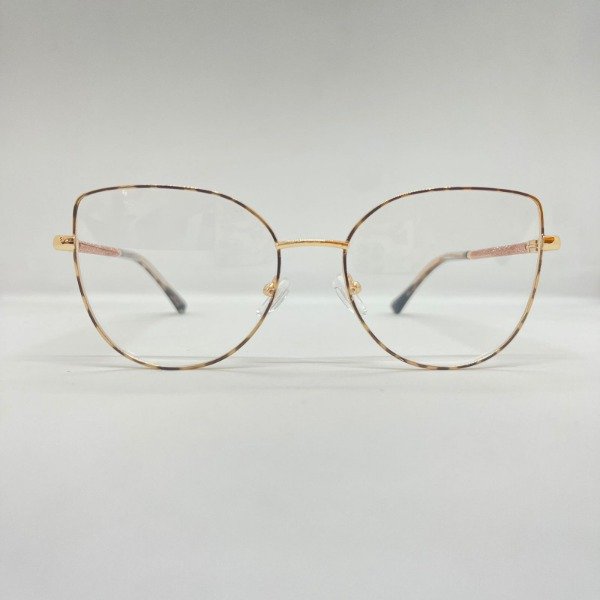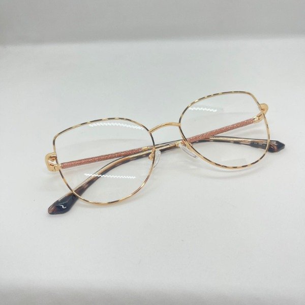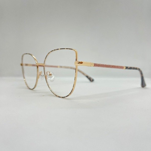 Anteojos para dama en tono dorado con frente animal print, con brillos sutiles en las patillas que le dan un toque de elegancia única.