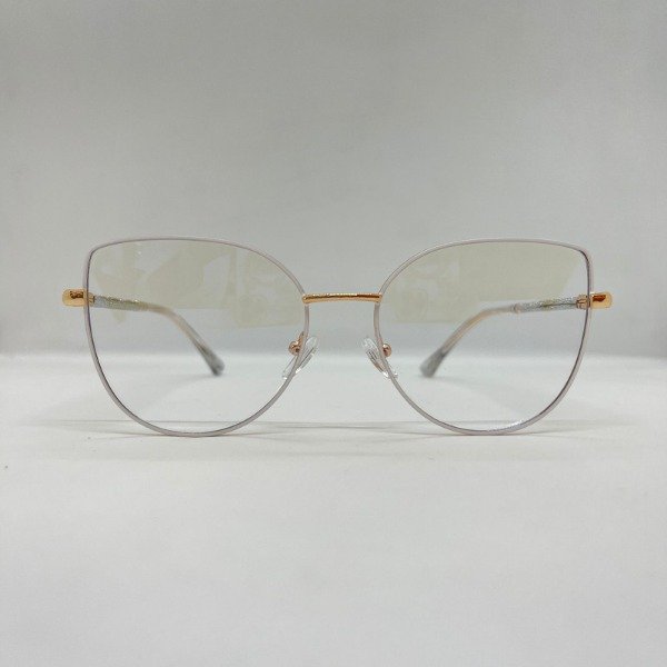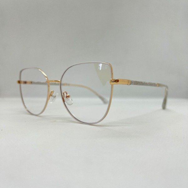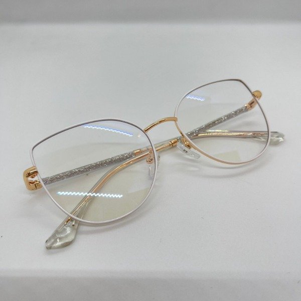 Anteojos para dama en tono dorado con frente blanco, con brillos sutiles en las patillas que le dan un toque de elegancia única.