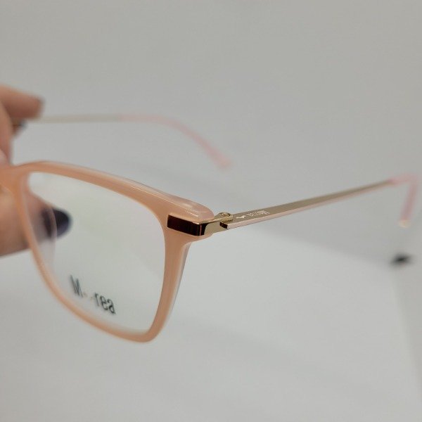 En material de acetato y patillas metálicas en dorado y rosa. Su clásico formato cuadrado, mezclado con su color brindan a este anteojo glamour.