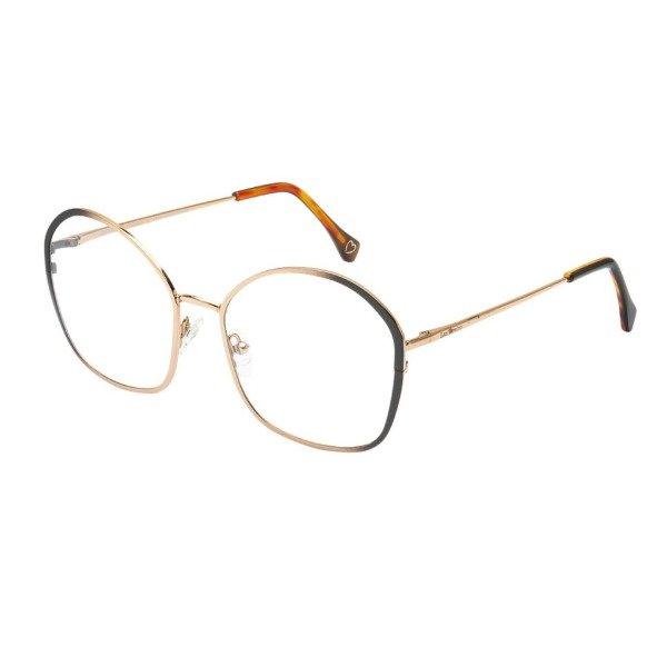Armazón de metal con forma ovalada y estilo oversize. Posee detalles de color degradé en los laterales del perfil metálico. Finas patillas metálicas con Logo de la marca grabado. Terminales plásticos con forma característica de la marca y corazón en lateral interno. Color 004