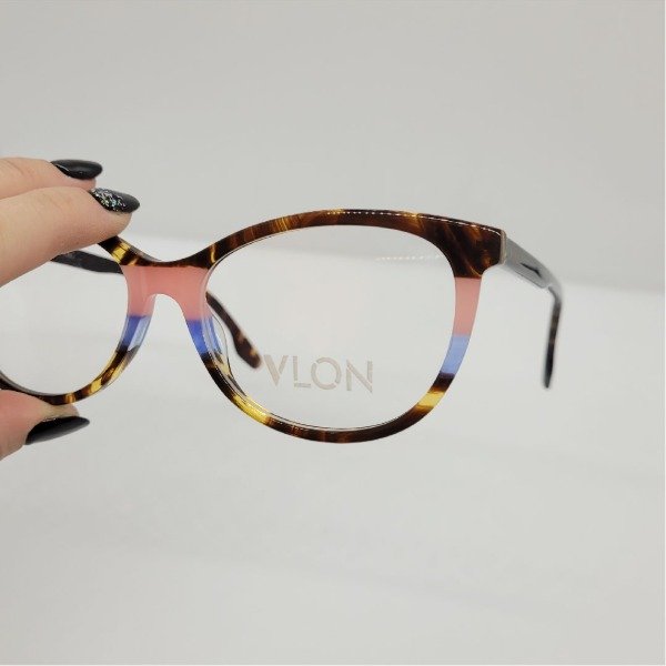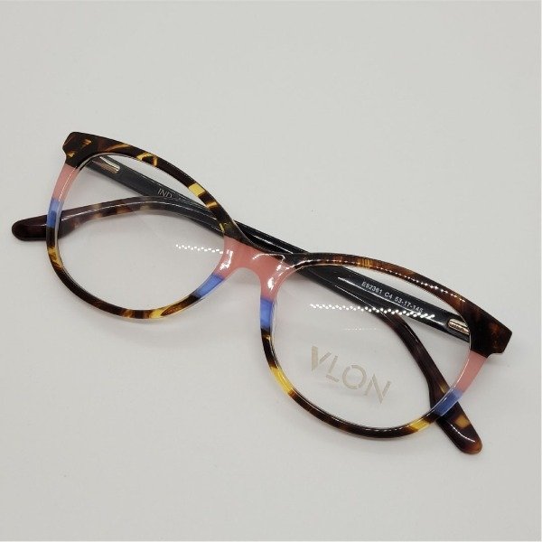 Armazón de diseño en acetato con patillas flexibles.
