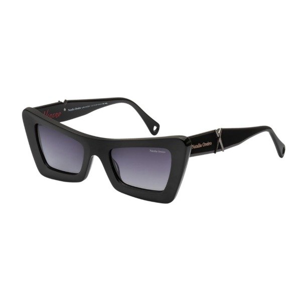 Las patillas continúan el diseño de los talones, contienen el Logo en bajo relieve, para afinarse hacia los terminales de acetato, con detalle de corazones en bajo relieve con color en el interior y puntera a contratono.